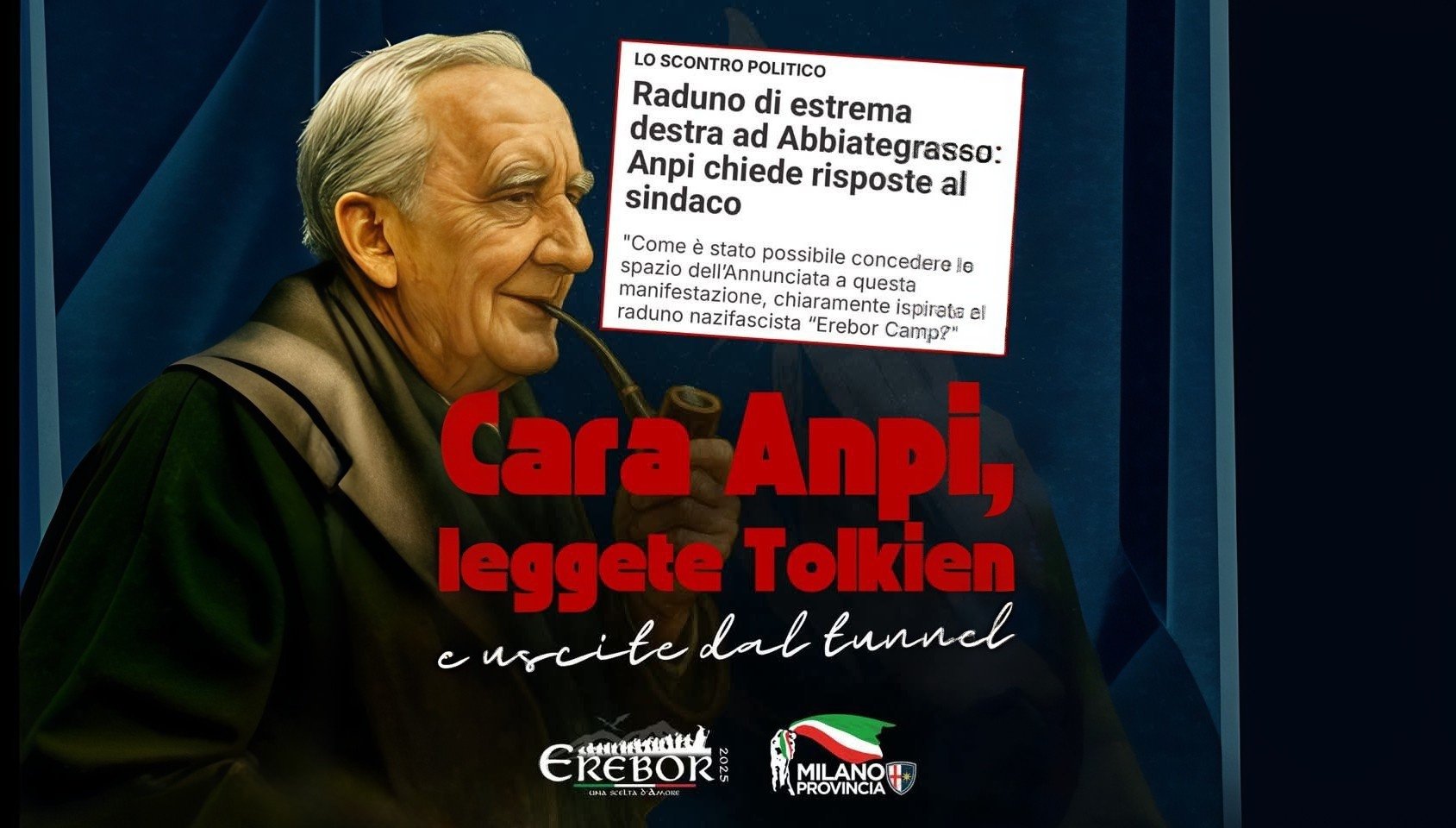 È bastato un nome, “Erebor”, per scatenare l’ennesima crociata antifascista fuori tempo massimo. L’ANPI di Abbiategrasso — insieme a un manipolo di sezioni locali — ha chiesto al sindaco Cesare Nai di revocare gli spazi concessi a Gioventù Nazionale Milano Provincia per la loro festa annuale, accusandola di essere “chiaramente ispirata a raduni nazifascisti”.
