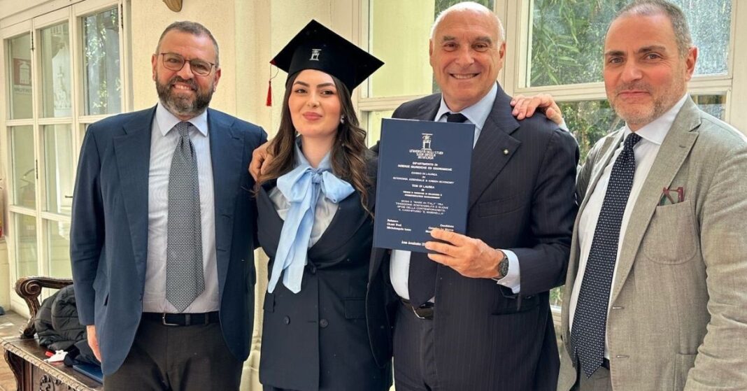 La tesi intitolata “Moda e ‘Made in Italy’ tra tradizione, sostenibilità e nuove sfide della contemporaneità: il caso-studio “E. Marinella” con relatore Michelangelo Iossa, docente di Teorie e tecniche di branding e communication management (al Suor Orsola un insegnamento trasversale per economia, psicologia e scienze della comunicazione) Caterina l’ha discussa a pochi giorni dalla Giornata Nazionale del Made in Italy. Una giornata che il Ministro delle Imprese e del Made in Italy, Adolfo Urso, ha scelto di celebrare martedì 15 aprile proprio a Napoli con un incontro all’Unione Industriali, al quale prenderà parte anche Maurizio Marinella.