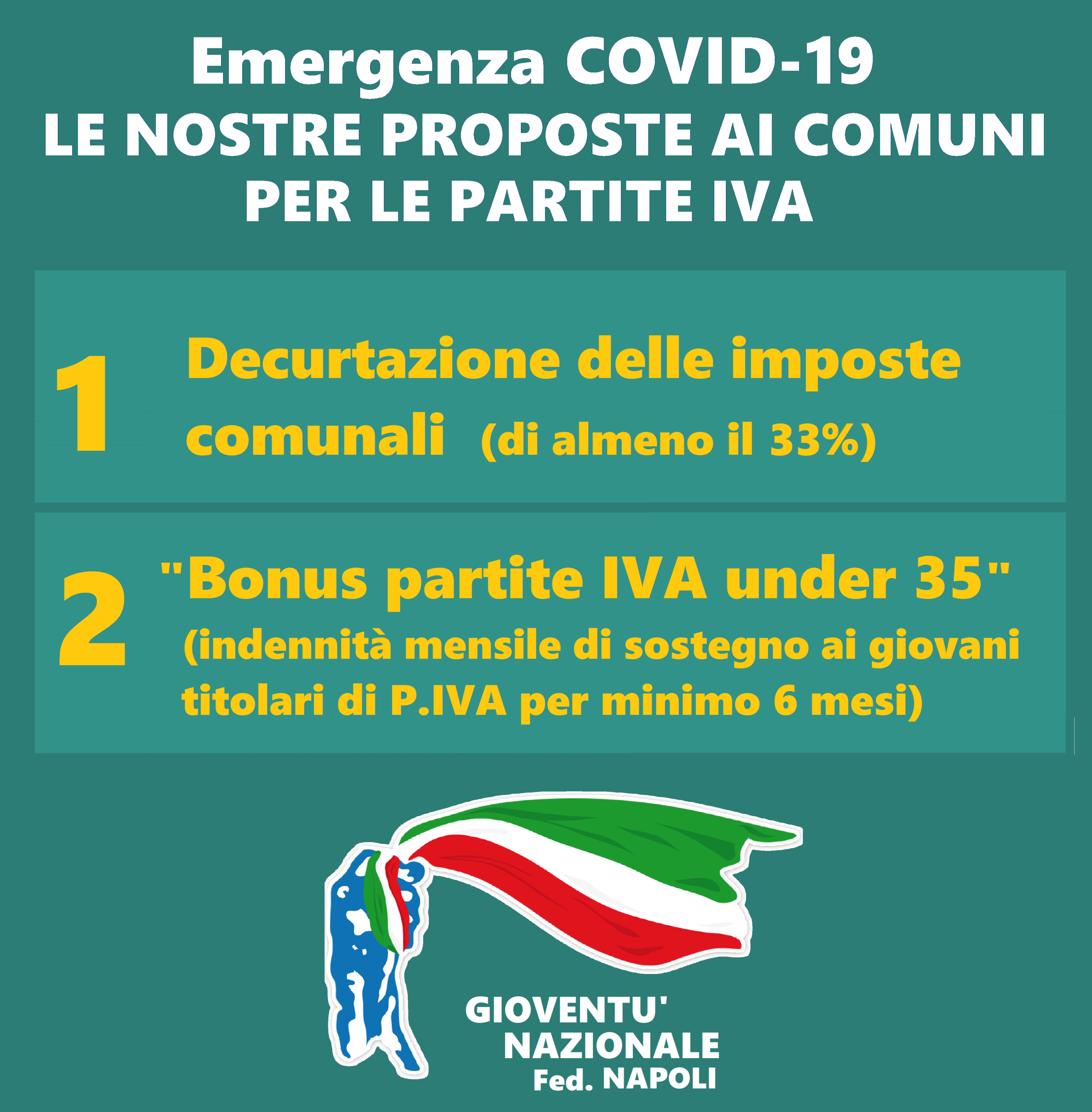La federazione provinciale di Napoli di Gioventù Nazionale, con una proposta formale, ha lanciato un appello ai sindaci della provincia, ponendo l’attenzione sulle difficoltà delle partite IVA, i commercianti e gli imprenditori che sono tra coloro che più stanno pagando i riflessi dell’emergenza Covid-19.