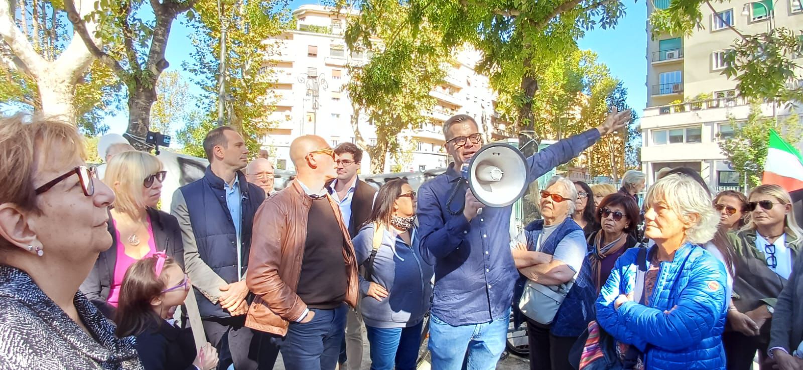 “Questa mattina come gruppo consiliare di Fratelli d’Italia, con il Coordinamento municipale, abbiamo aderito alla manifestazione indetta dai comitati dei residenti di via Guido Reni, per dire NO al progetto che prevede la realizzazione di una pista ciclabile lungo la medesima strada.