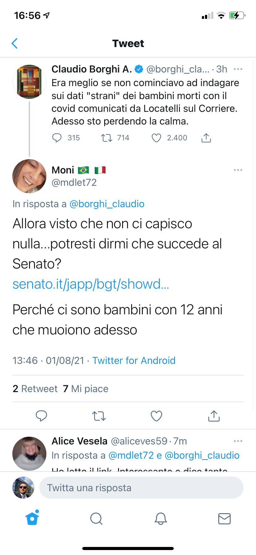 sulla protezione dal COVID nei bambini si aggiunge che “I bambini sani non corrono quasi alcun rischio di COVID-19, con un rischio di morte di appena 1 su 2,5 milioni. Nessun bambino precedentemente sano di età inferiore ai 15 anni è morto durante la pandemia nel Regno Unito e i ricoveri in ospedale o in terapia intensiva sono estremamente rari e la maggior parte dei bambini non presenta sintomi o ha sintomi molto lievi. Sebbene il Long-Covid sia stato citato come motivo per vaccinare i bambini, ci sono pochi dati concreti. (…) La condizione infiammatoria, PIMS, è stata elencata come un potenziale effetto avverso nello studio per bambini Oxford AstraZeneca. L’immunità? acquisita naturalmente darà un’immunità? più? ampia e più duratura rispetto alla vaccinazione. Infatti, molti bambini saranno già immuni mentre singoli bambini ad alto rischio possono già ricevere la vaccinazione”;