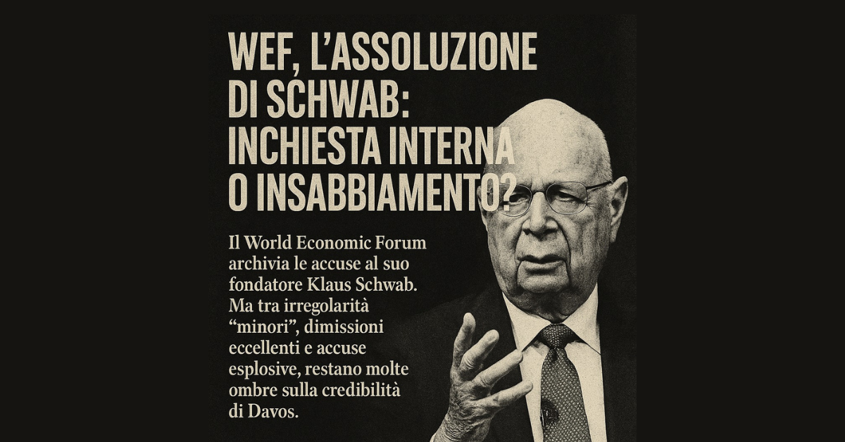 Il board del World Economic Forum (WEF) ha dichiarato che Klaus Schwab, fondatore del Forum di Davos e padre del “Great Reset”, non ha commesso “material wrongdoing”, ossia nessun illecito sostanziale. Una formula volutamente ambigua: tecnicamente innocente, ma non del tutto limpido. Perché lo stesso WEF ha parlato di “irregolarità minori”, riconducibili a “linee sfumate” tra contributi personali e attività istituzionali.